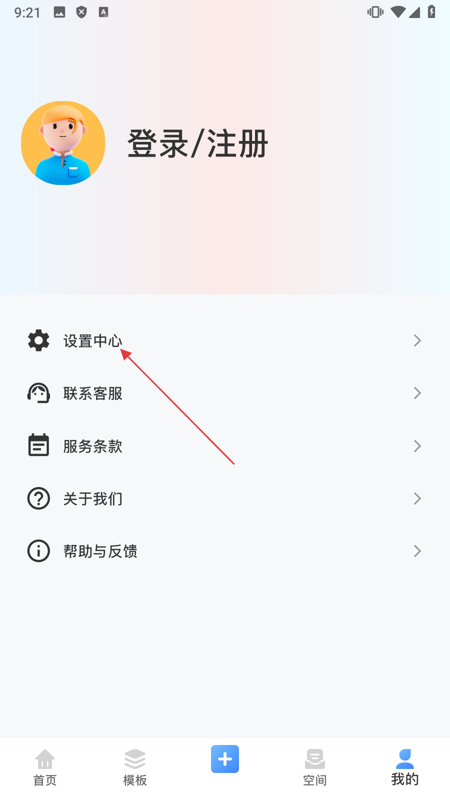 2、进入个人界面后,点击【设置中心】,进入设置中心界面。
