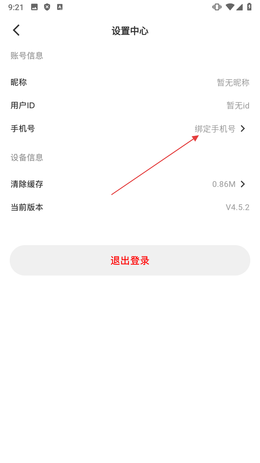 3、在设置中心界面,点击【绑定手机号】,即可进入手机号绑定界面。