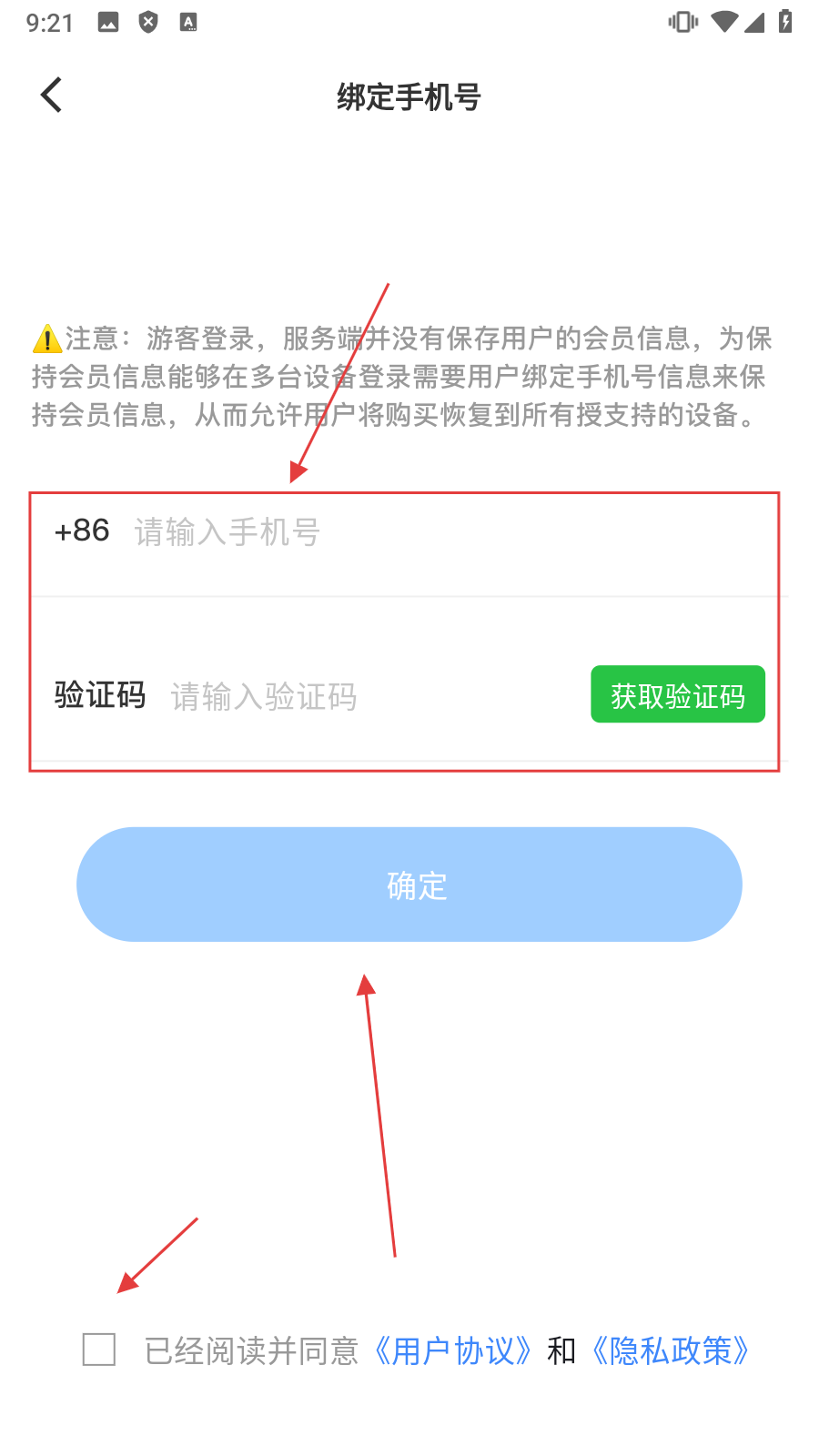 4、在绑定手机号界面,输入【请输入手机号和验证码,勾选协议】后点击【确定】,即可完成手机号绑定。