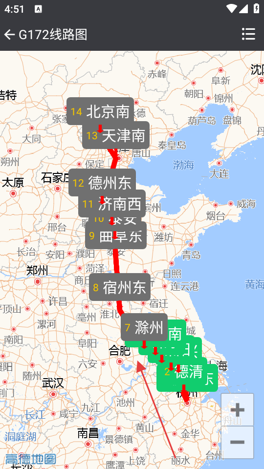 4、进入线路图页面,可查看【G172】途经站点的地理分布及线路走向。