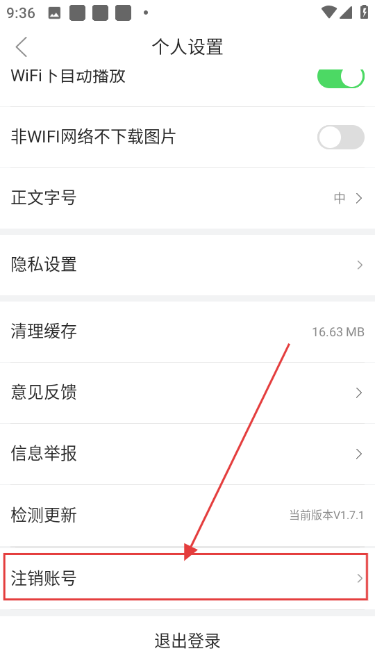 3、在个人设置页面,点击【注销账号】,可进入申请注销账号页面啦。