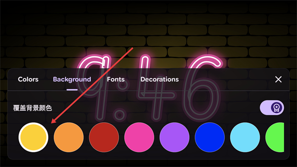 3、在设置页面的Background板块选择目标背景颜色,如黄色。