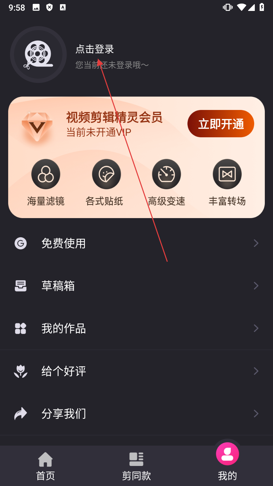 2、进入个人界面后,点击【点击登录】,进入登录选择界面。