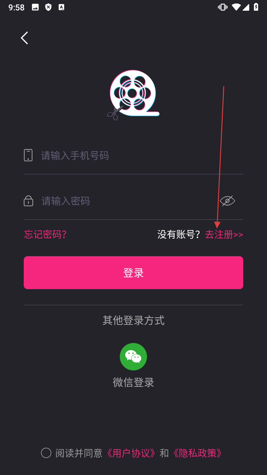3、在登录选择界面,点击【去注册】,进入注册界面。