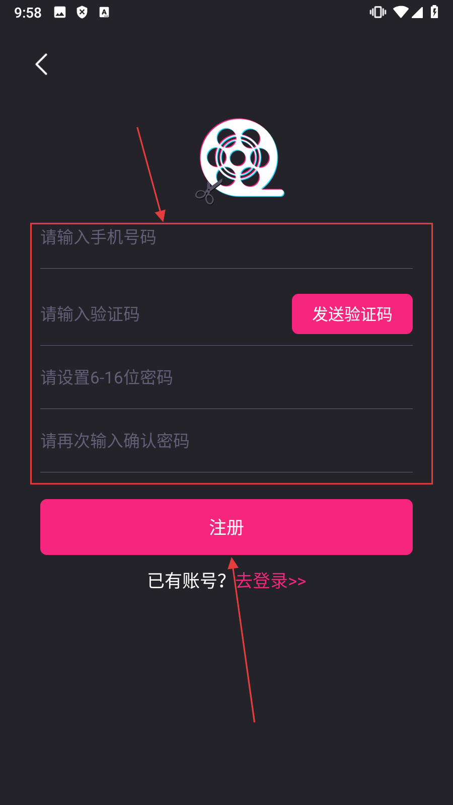 4、在注册界面【填写手机号、验证码和密码】后点击【注册】,即可完成账号注册操作。
