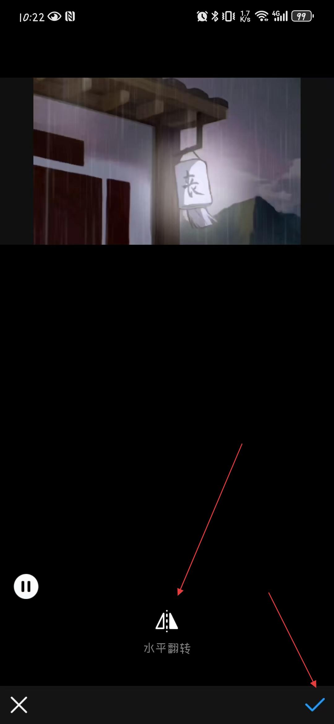 2、进入视频选择界面后【选择要翻转的视频】,进入视频水平翻转编辑界面。
