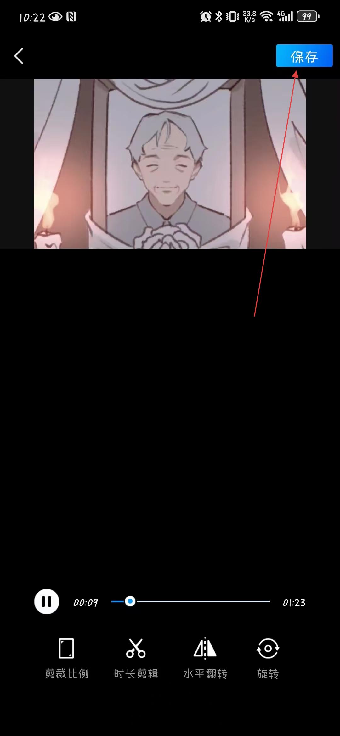4、在视频保存界面,点击【保存】,即可完成视频水平翻转保存操作。