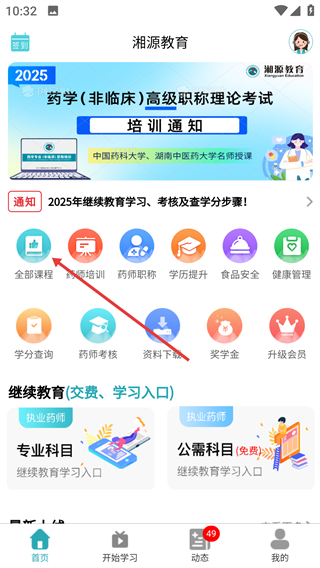 4、支持执业药师继续教育的学习与考核全流程,专业课程与公需课程可一站式完成,无需切换多平台操作。