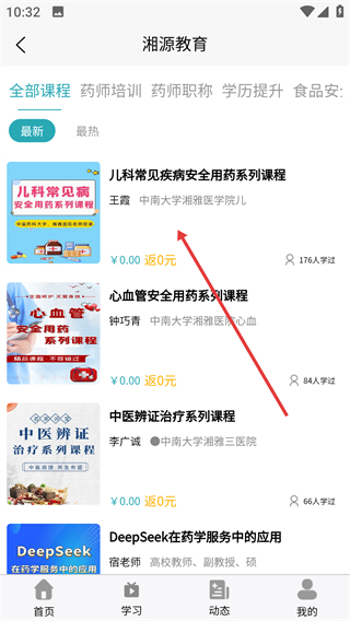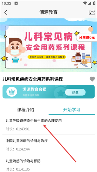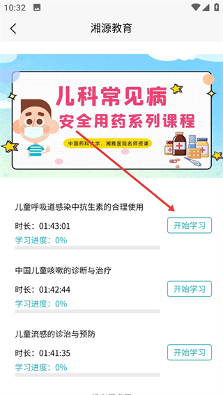 2、在课程列表中选择目标课程,如【儿科常见疾病安全用药系列课程】。