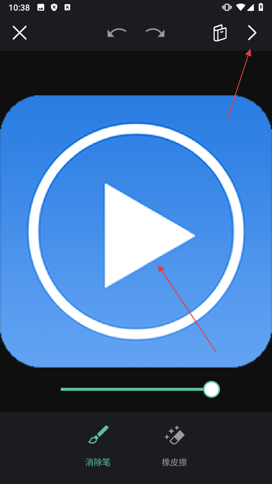 4、在照片消除物体编辑界面【完成消除】后【点击右上角箭头】,即可完成照片消除保存操作。