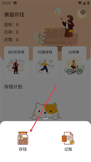 2、在功能选择菜单中点击【存钱】选项,进入存钱模式选择页面。