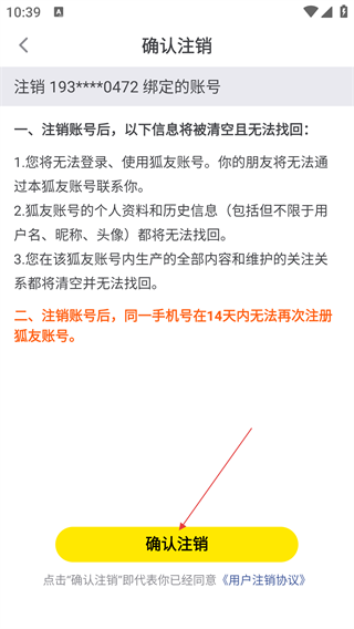 4、在确认注销页面阅读注销说明后,点击【确认注销】即可注销账号。