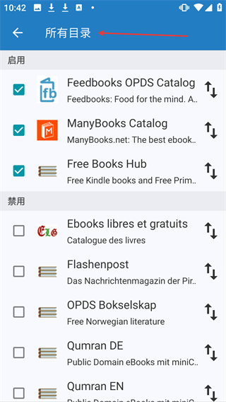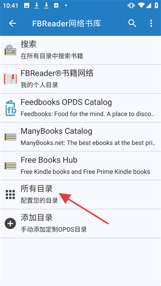 3、在FBReader网络书库页面,可点击【所有目录】。