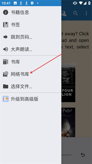 2、在功能菜单中,点击【网络书库】选项,进入网络书库页面。