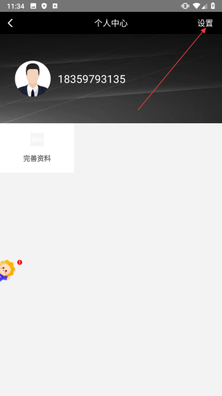 2、进入个人中心界面后,点击【设置】,进入设置界面。