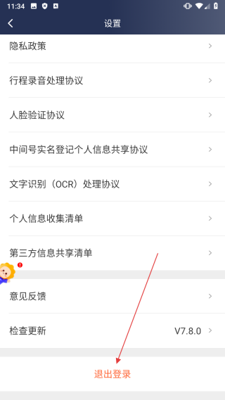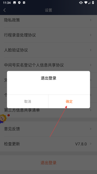 3、在设置界面,点击【退出登录】,弹出退出登录确认提示框。