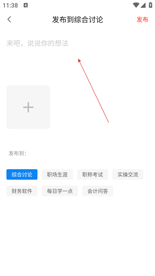 3、进入发帖页面,在输入框中输入想要分享的想法。