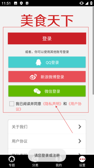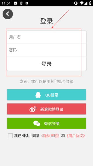 2、进入登录界面,可【选择QQ、新浪微博、微信登录】,开启账号登录操作。