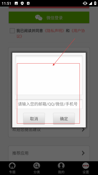 3、在反馈界面,可【输入邮箱、QQ等账号信息反馈信息】,进行反馈相关操作。