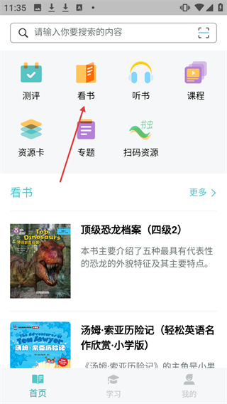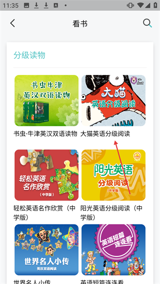 2、在看书页面的分级读物中,点击【大猫英语分级阅读】,进入其读物列表。