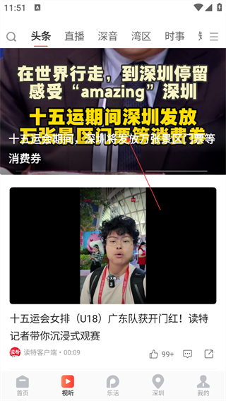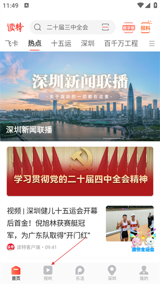 3、在视听页面选择目标新闻视频,如关于十五运会消费券的新闻。