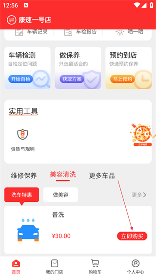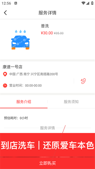 2、进入门店页后,选择服务项目如【普洗】,点击【立即购买】。