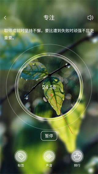 4、专注计时开始后,可查看剩余时间,也可点击【暂停】控制专注进程。
