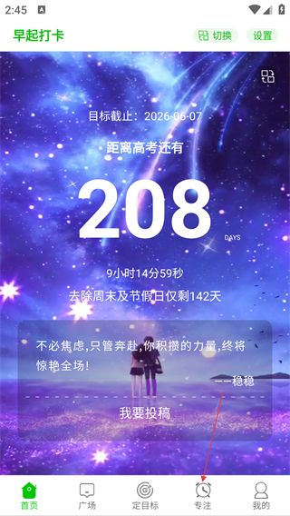 1、提供精确至秒的高考倒计时显示与阶段目标设定功能,帮助考生清晰把握复习进度并保持时间紧迫感。
