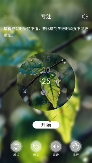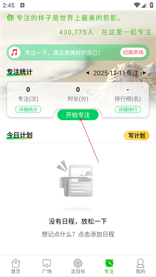 2、在专注页面,点击【开始专注】,进入专注时长设置页面。