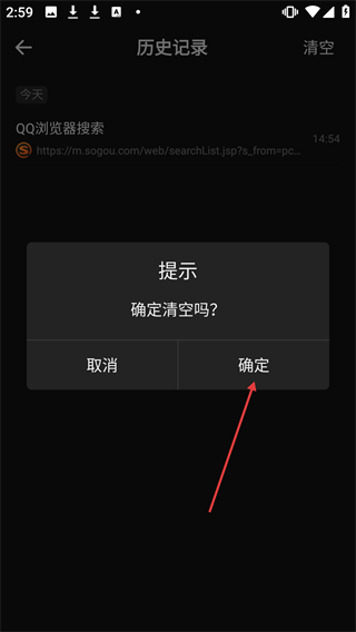 4、在弹出的提示框中点击【确定】,即可清空历史记录。