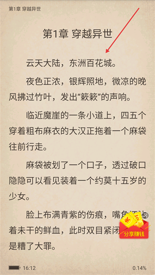 4、进入阅读页面后,即可开始阅读【第1章穿越异世】。