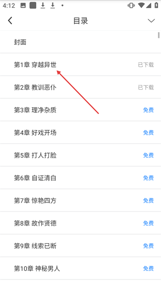 3、在目录页面点击【第1章穿越异世】进行阅读。