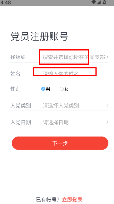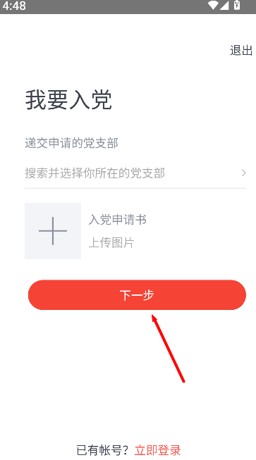 3、如尚未加入党组织,可点击“我要入党”选项,填写入党申请书并提交审核。