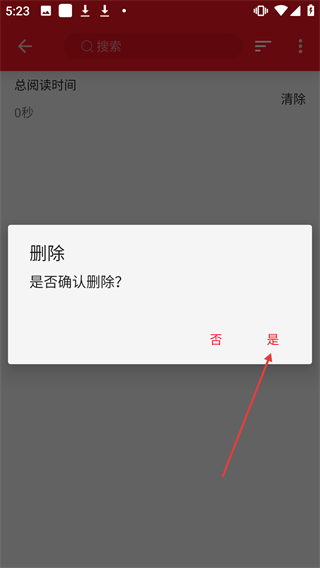 4、在删除确认提示框中点击【是】,完成阅读记录删除操作。