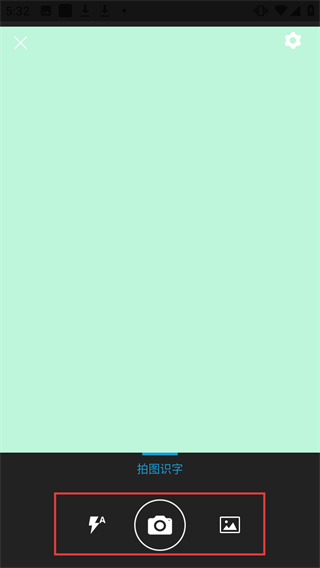 4、进入拍图识字界面,可通过闪电A、相机拍摄或图片选择的方式进行图片转文字操作。