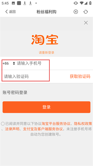 4、在淘宝登录界面输入手机号和验证码,完成登录以继续购买流程。
