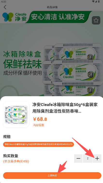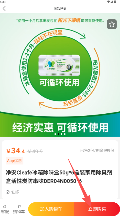 1、首页浏览“优选好物”点击冰箱除味盒。