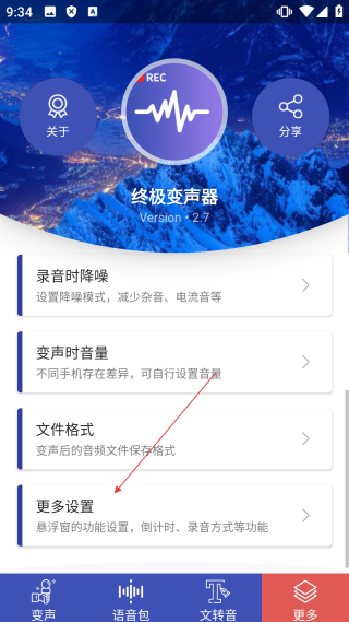 1、在软件界面点击【更多】,进入更多功能设置界面,开始功能设置操作。