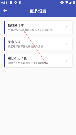 3、在更多设置界面,点击【播放倒计时】,展开时间选择界面。