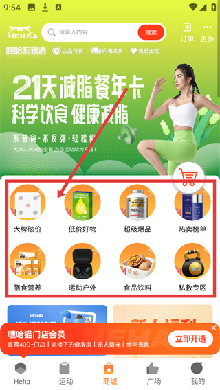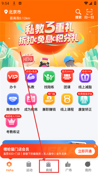 1、在软件首页,点击底部【商城】,可进入商城页面,准备浏览健身相关商品啦。