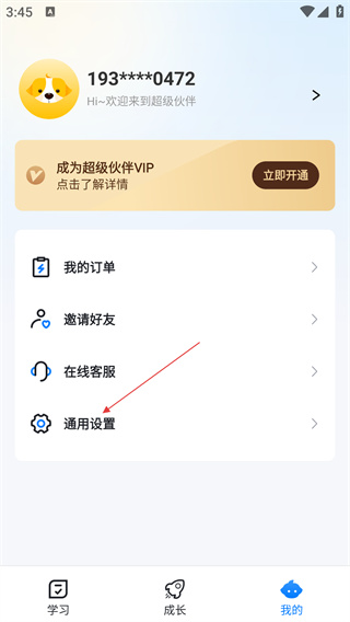 2、在个人中心页面,点击【通用设置】选项,进入通用设置页面。
