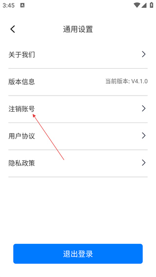 3、在通用设置页面,点击【注销账号】选项,进入注销账号说明页。