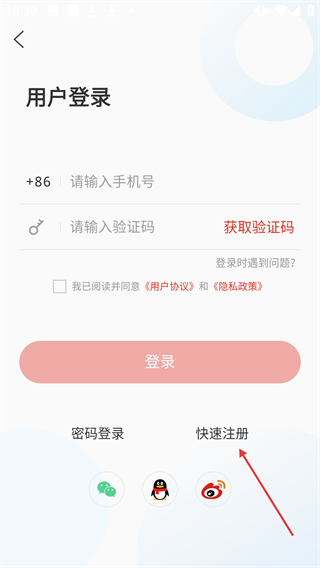 3、在用户登录页面点击【快速注册】,进入注册界面。