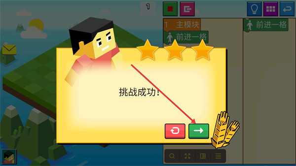 4、挑战成功后,点击绿色箭头按钮,继续后续游戏内容。