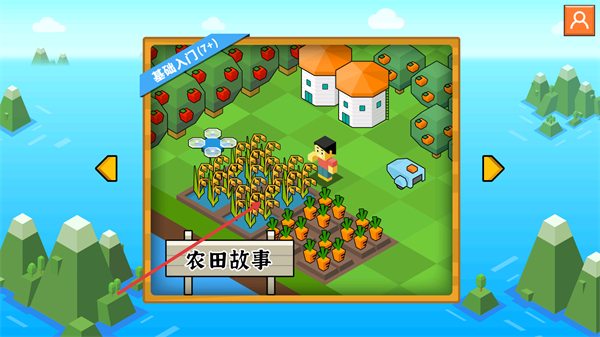 1、主题设计贴合儿童喜好,田园风场景与讨喜画风增强吸引力,让编程学习成为充满乐趣的体验。