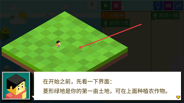 2、在游戏开始前,了解界面信息,菱形绿地为可种植农作物的土地。
