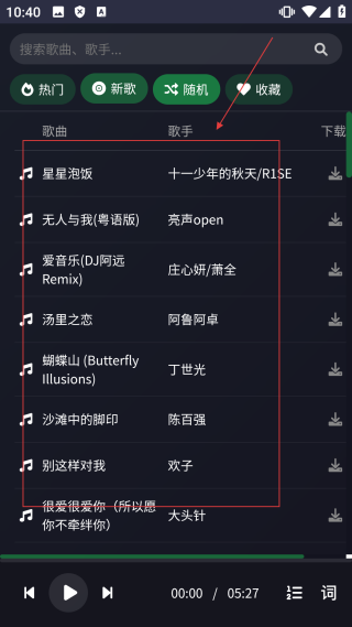 2、进入新歌界面,可选择【随机播放模式】,播放喜欢的新歌,享受新歌聆听体验。