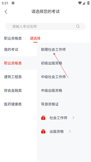 1、在考试选择页面中,选择感兴趣的职业进行学习。