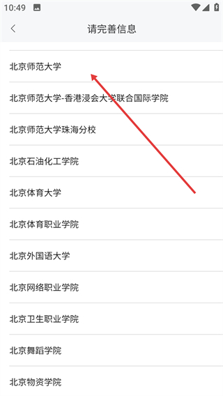2、在学校选择页面选择目标学校,如【北京师范大学】。