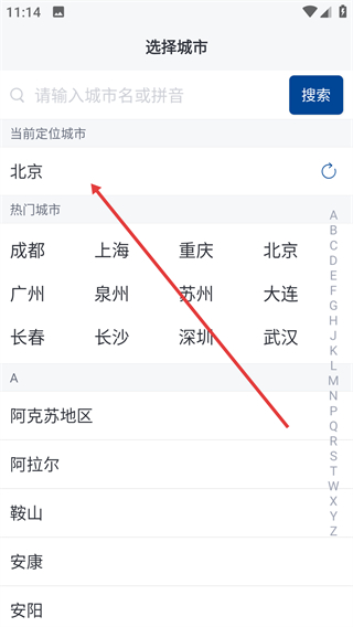 1、选择城市,如【北京】,进入对应城市的影讯页面。